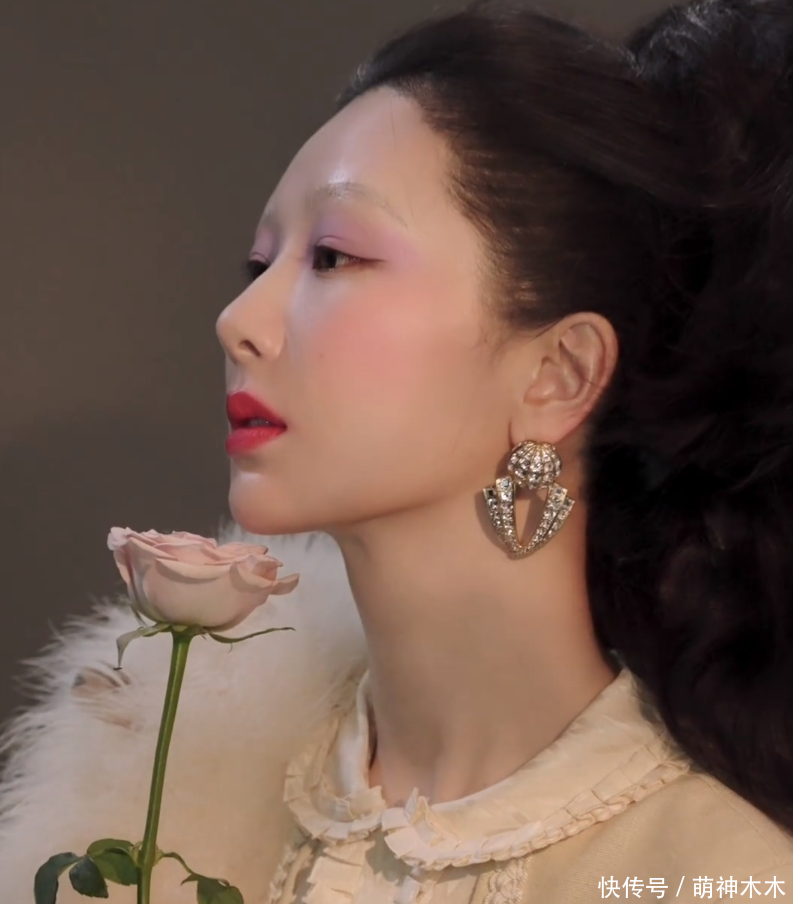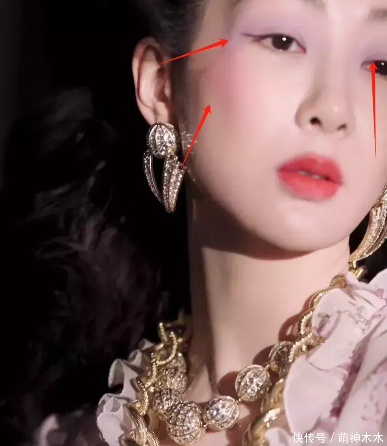 撑不起高级感不说,近看更是灾难,原本无眉就已经很诡异了,底妆又刻意这么白,腮红和眼妆太浓形成了一个强烈的反差,又进一步让妆面看起来太脏,同时又直观暴露了杨紫脸大的劣势,只能说杨紫没必要在不适合自己的赛道里强求。