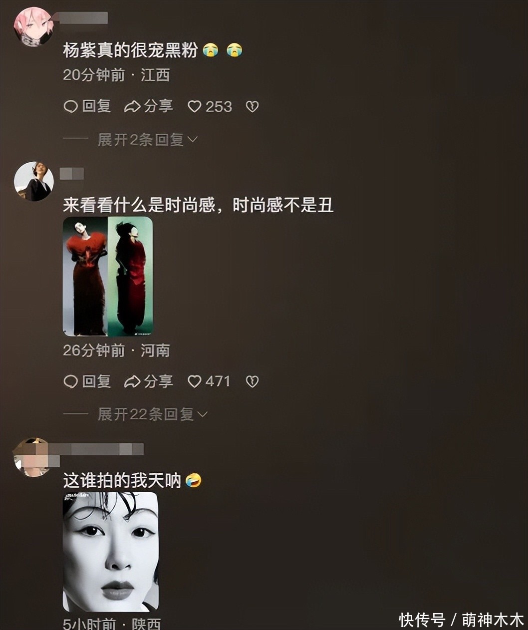 话又说回来,杨紫原本借助新作品的热度登封是好事儿,可因为造型雷人和撞衫接连引起吐槽,甚至连杂志方官博的评论区都沦陷了,直呼杨紫的新造型像女鬼,一点时尚感都没有。