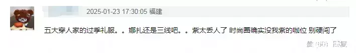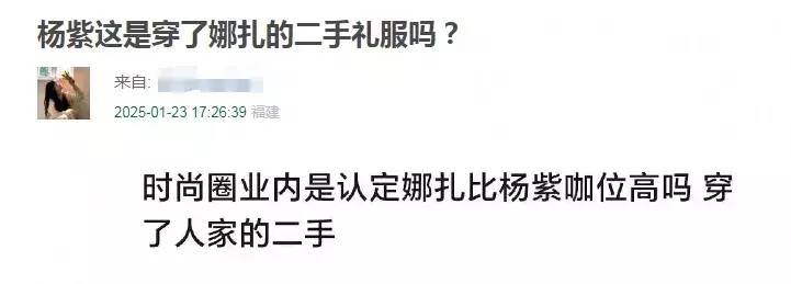 杨紫又一次因为造型遭到了群嘲,但其实还没完,有眼尖的网友发现,杨紫和娜扎撞了高定,当然,撞衫在贵圈屡见不鲜,可最怕的就是被拿来对比。虽说穿上同款高定的娜扎也不见得有多么惊艳,可杨紫在她的衬托下一下子土味十足,更重要的是,杨紫团队没有好好把关,让杨紫捡了比自己咖位低的90花的衣服来穿,难怪又被黑粉吐槽了。